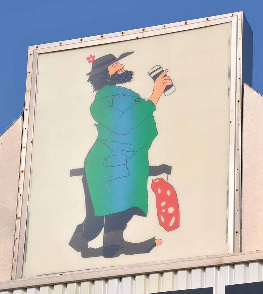 Britt, IA is home to the Hobo Museum and the National Hobo Convention. This link gives some info about this character on their sign: