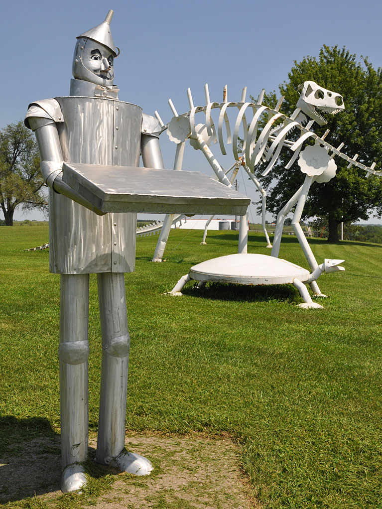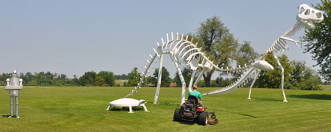 These statues / sculptures also from Corydon. I shot with the lawnmower guy for scale. Now I regret it — kind of messes up the shot.