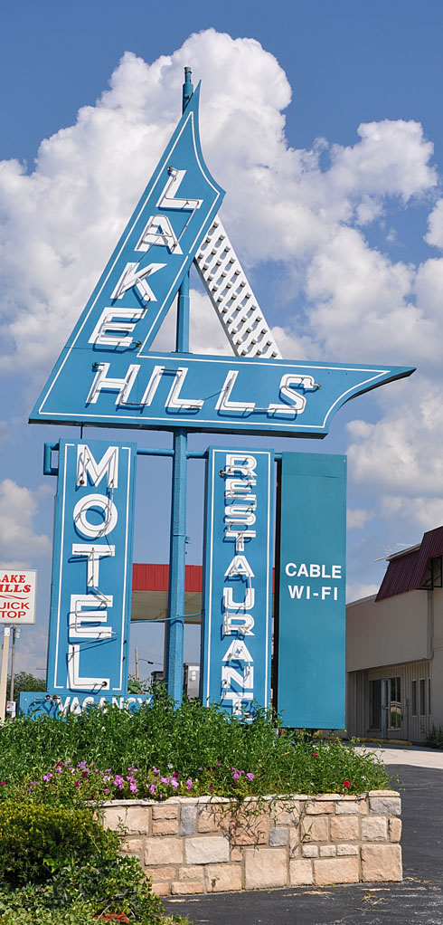 This one’s also in Sedalia. Lots of signs in Chicago have these attached ladders for repair work. Must have been very scary! I doubt they use them at all now — liability concerns — and now sign companies have cranes. Anyhow, I’ve never seen a sign with this many ladders: