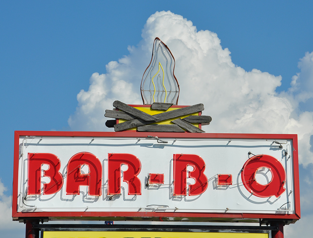 This one also from Warsaw at the Chuck Wagon BBQ. Apparently a modern sign but so sweet. I love flame signs and this one’s gotta be great at night: