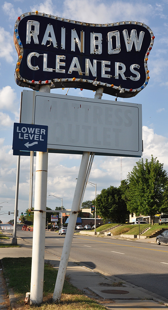 When I got rolling again, not less than a mile down the road, I saw a sign that said site of new Capitol Federal Savings. Uh oh. Looks like that cute little bank might be endangered. The KC suburbs are rampant with new development — bigger, newer, nicer — the same chant going on everywhere in America. Shoot ’em now folks! These things have a way of disappearing. Praise the business owners for keeping their old signs/buildings and plead at your community meetings and electees that these things be spared. I’ll keep my lecture short for now.