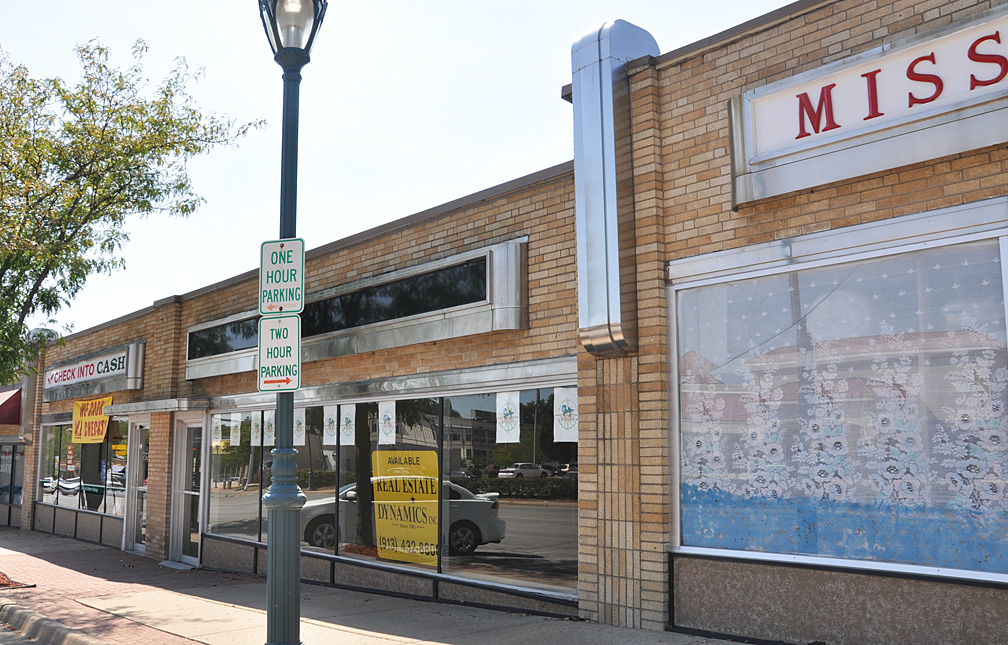 Sometimes you just can’t tell what’s “real” (old) and what’s retro (fake imitation). Particularly, as this retro stuff ages it gets really confusing. This little strip mall in Mission has a stainless-looking wedding cake over the cleaners entrance and some other little stainless embellishments on the side. I sure can’t tell — but maybe a local remembers when this place was built or how long they’ve seen it there.