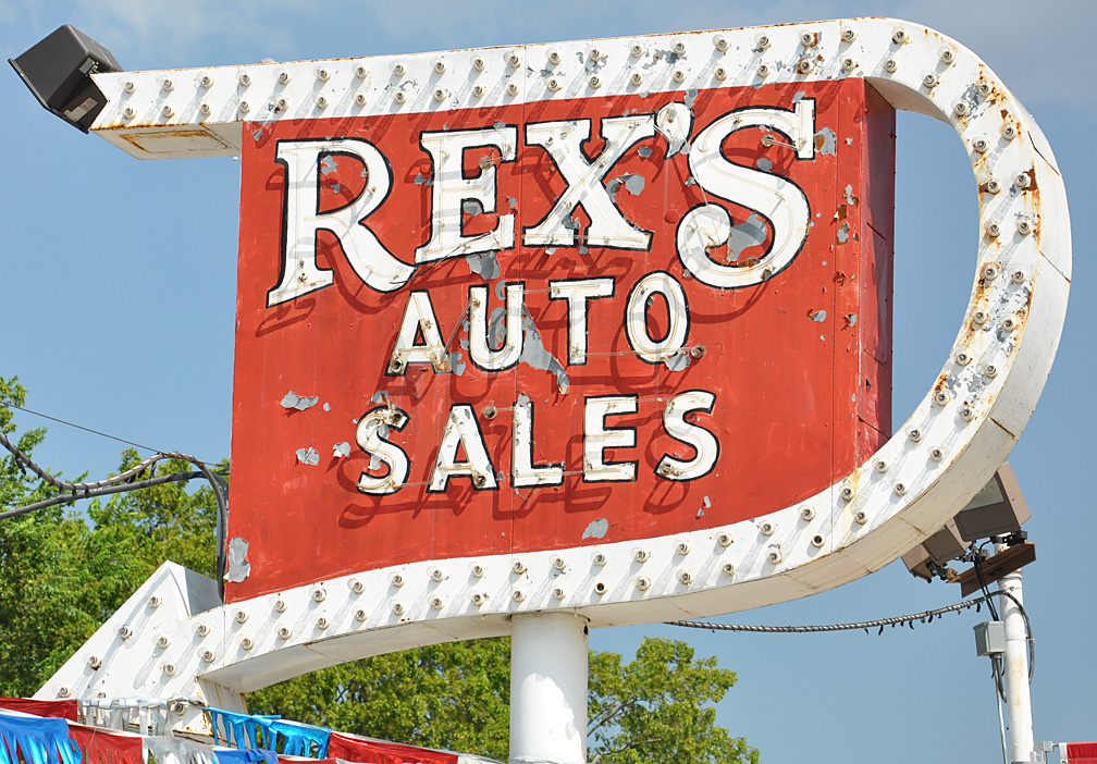 This former Burger Chef still has the original lights. The building is used as a used car lot office now.