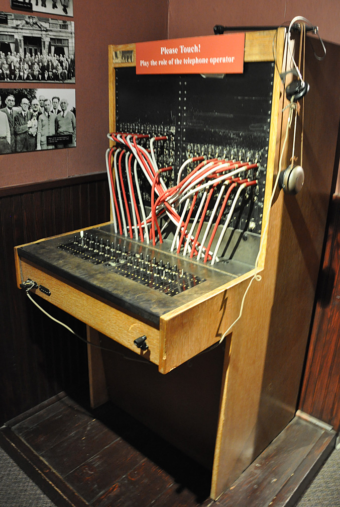 At one of my Flickr postings for a motel sign last week, one of the neon signs advertisted “switchboard” and a few folks didn’t know what that meant. Well, this museum had a big collection of them as well — as well as this “hands-on” machine: