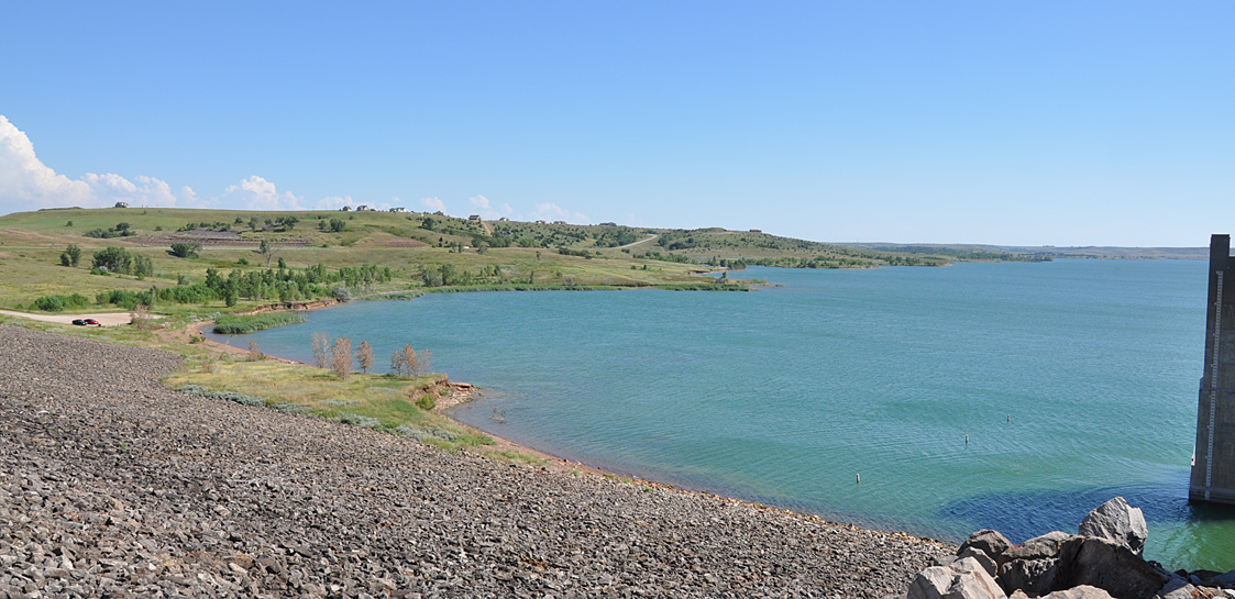 And when you think of Kansas, unless you’ve been there extensively or live there, you probably don’t think of lakes. But I passed two nice ones today: Lake Waconda which was HUGE. And this one: Lake Wilson — which the dogs did not let me pass. Got to a bridge and had to turn around. The water was crystal clear — very fun for watching little doggie legs kicking. A good time was had by all. In addition to the cooling in the water part, much sniffing of, rolling in, and eating of dried bits of crusty crablike animals.