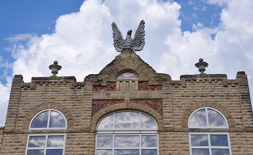 Couldn’t resist this dramatic shot in Wamego. I saw lots of these limestone (I think) brick buildings today. Must be a Kansas thing — just can’t remembering ever seeing this many.