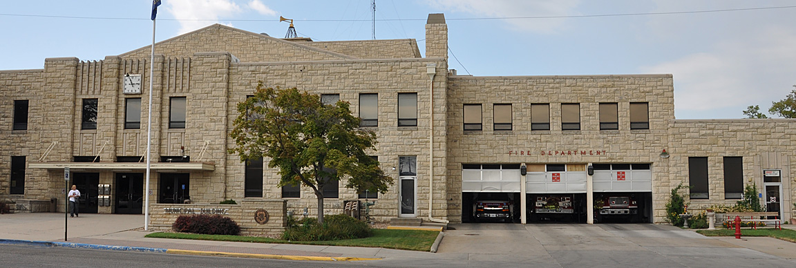 A few shots from Junction City. More limestone brick — this time, an Art Deco fire station and municipal building: