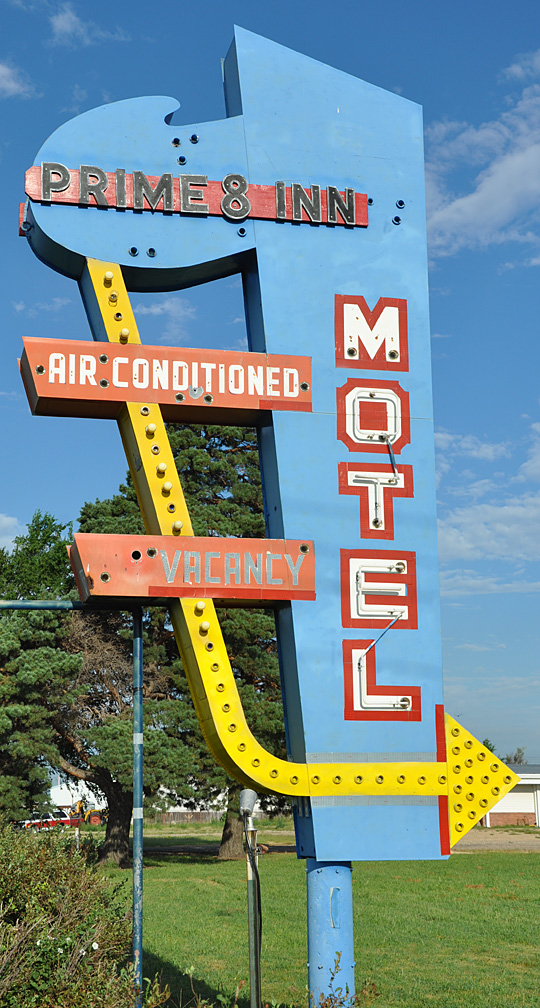 More miles and fewer stops today since western KS is far more rural. More gas stations than neon signs. But it’s really so pretty that I didn’t feel the pain of only about 3 hours sleep until about 5pm. Got a giant gas station coffee and forced myself through the bleeriness. It also helped to have good radio company (Car Talk, Wait Wait, and I’ll admit, Prairie Home Companion). I was doing alright til I turned off the engine tonight and then I took a four hour nap. Yikes! So now it’s 2am as I’m cranking out this stuff.