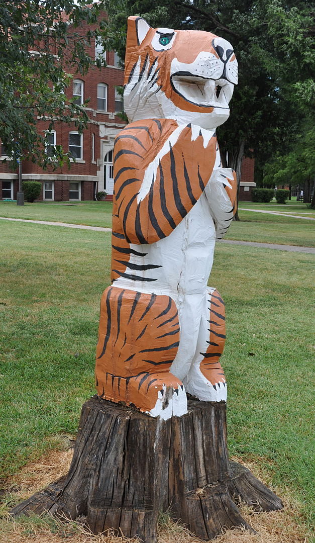 Two chainsaw wood carvings in McPherson. This woman doesn’t seem to be standing near a school. There is a church across the street but I don’t think that’s the connection.