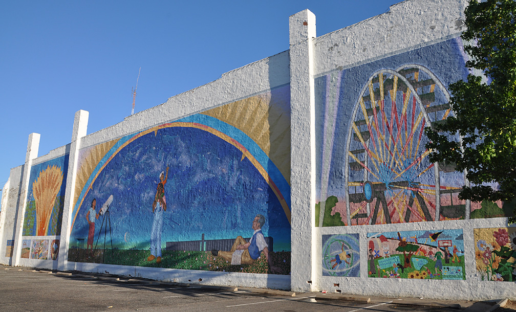 One of the guys she’s working with did this wall mural in Hutchinson. The one in Newton will be about the same size: