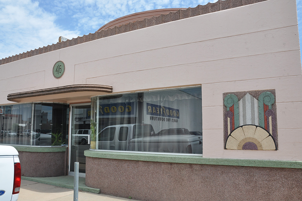Just next door is this building which I suspect was originally a Firestone Tire store. Here’s one with a similar pylon tower in San Mateo, CA: