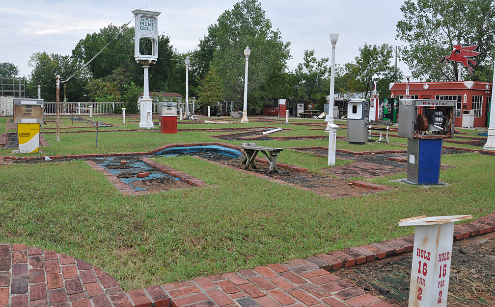 I uploaded a couple photos tonight at Flickr from Trotnic Recycling in Parsons. The next couple photos are also from there. I guess this was an idea that didn’t work out: a gas station themed mini golf.