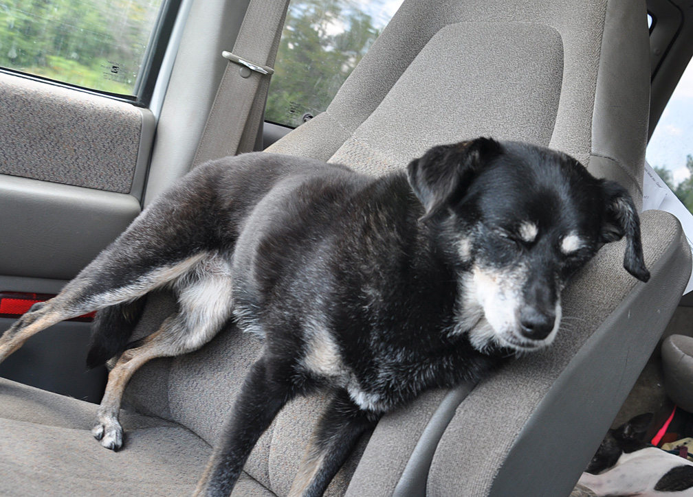 The dogs got some good running and some good sleeping today. Grippie has perfected the art of sleeping standing up: