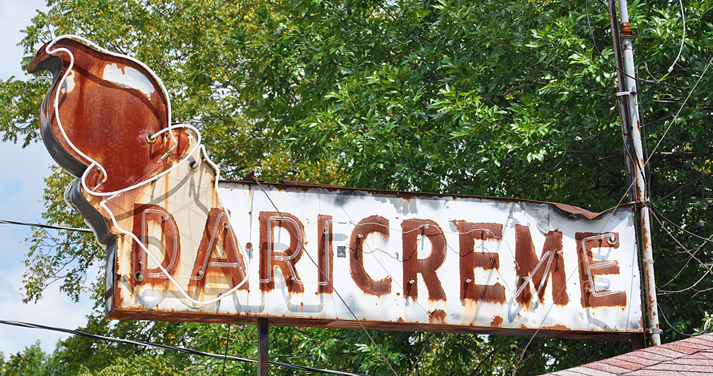 This rusty rooftop sign from Jasper. This ice cream stand is still alive and kicking: