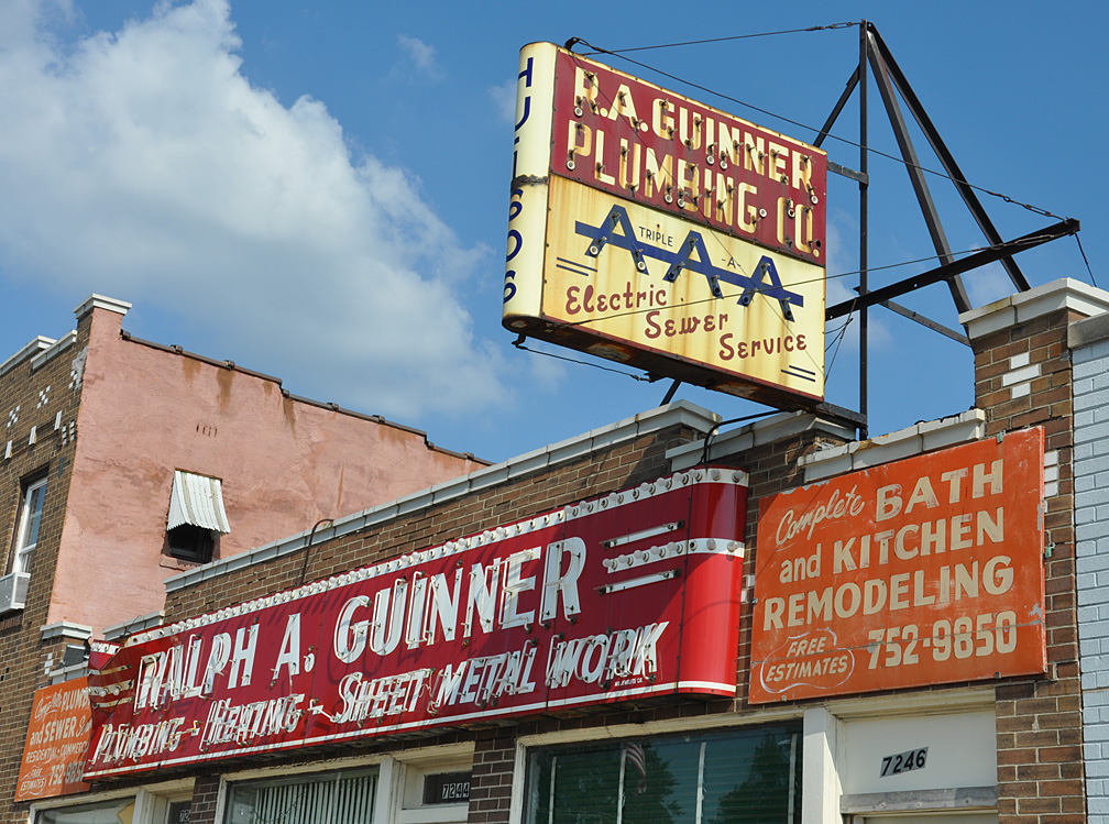 A sort of bizarre mix of shapes. This just can’t be original trio, right? To me, it looks like these pieces were moved from another/other sign(s) into this frame.