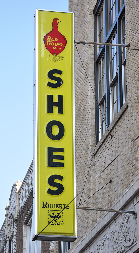 How ’bout that! A few surviving neon Red Goose Shoe signs out there — but I’ve never seen a plastic one (in life or on-line). The store is now some artsy thing so I don’t know if this will be sticking around much into the future: