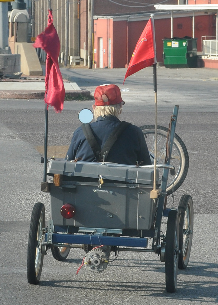 Let’s get to it. Early in the day, I came across this delightful guy. I’m not sure how his motorized contraption works but it made no noise at all! Maybe he’s a St. Louis icon for all I know — if not, he should be. Speeding along near Forest Park: