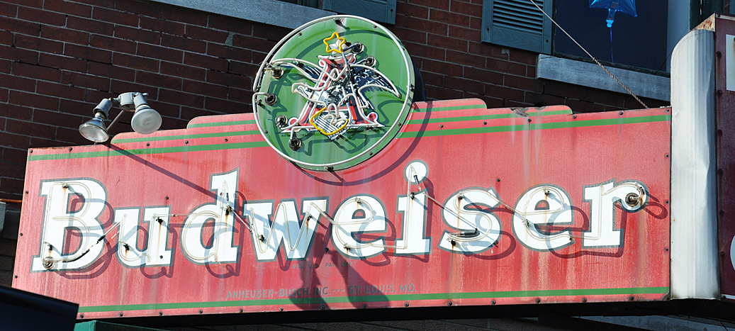 Lots of old Anheuser-Busch / Budweiser signs in St. Louis. Including the gigantic one on the interstate which even I am to scared to pull over and shoot. It looked fantastic as I was driving by at dusk tonight. Flapping wings and all. I wonder how many accidents it has caused? Well, these lesser Bud signs are still damned nice. Many of them are triangulated two-siders.