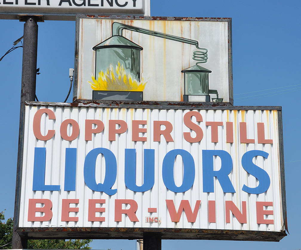 Still in New Albany. I can’t think of any signs still around with representations of moonshine stills: