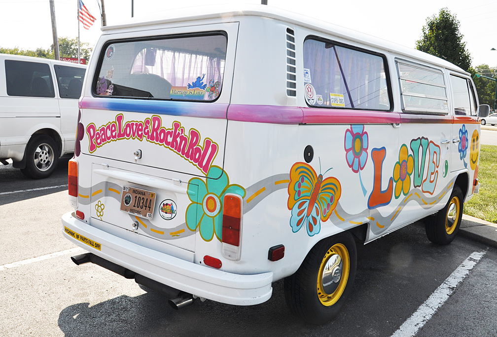I came upon this VW van in Jeffersonville. My first van, more than 30 years ago back in California, looked just like this. It was probably the same year, also white, but missing the artwork of course:
