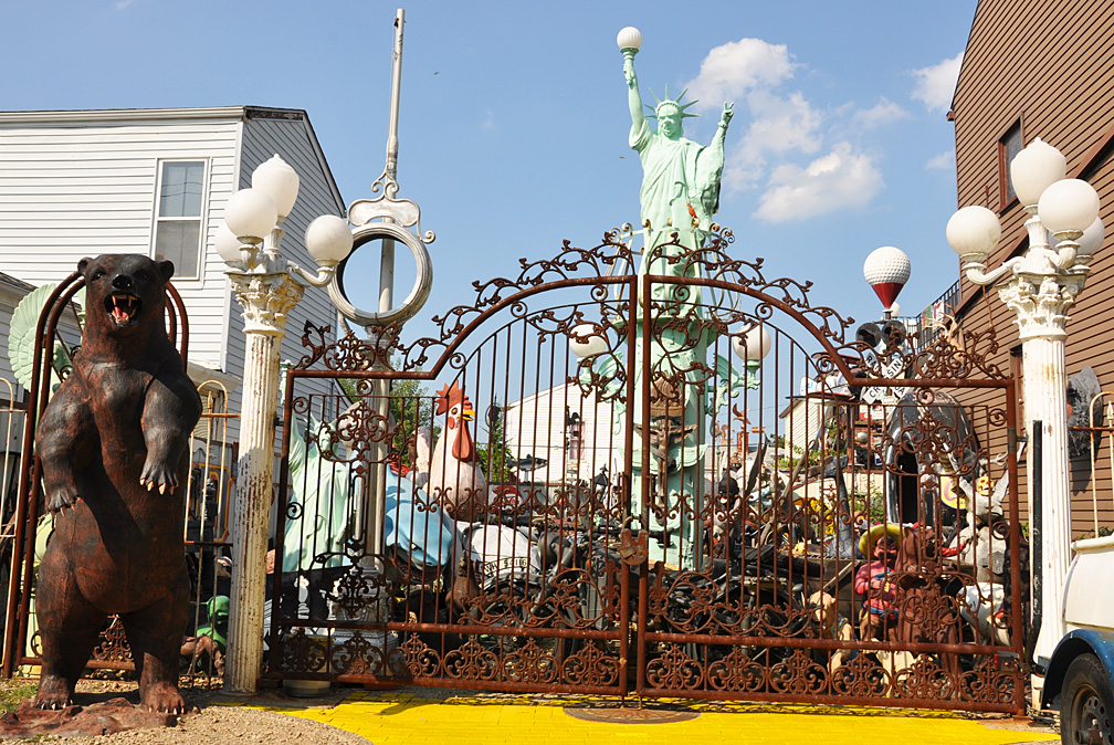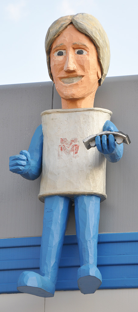 And now, for the final batch of photos. Back in time to Day 26 in Indiana and Kentucky. These neat foam statues were affixed to the side of Mr. Muffler & Brake Center in Owensboro, KY. I’m told they hold brake tools & parts.