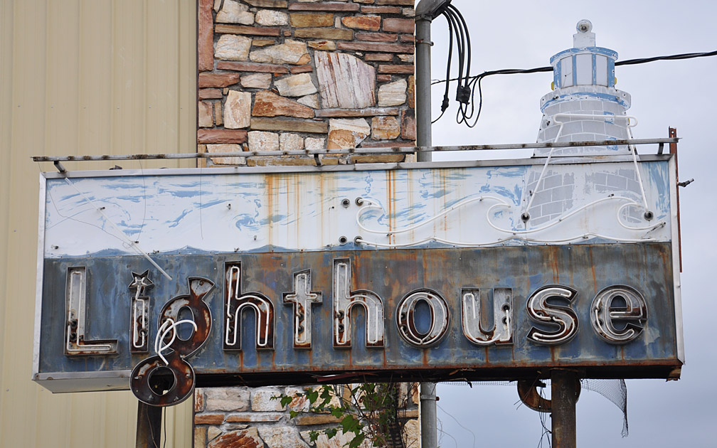 A two-fer — both signs at the same business. Bulbs, plastic, neon — this one’s got it all!