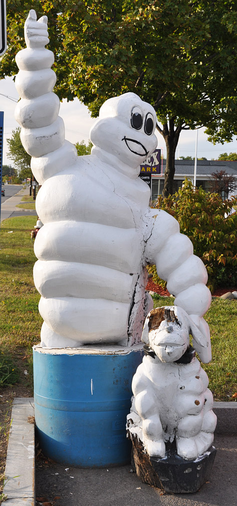 At a tire store in East Greenbush. A Michelin Man and his dog. Did he have a dog? This is a wood carving so I assume it’s a one-of-a-kind statue. Looks like someone backed into the poor dog.
