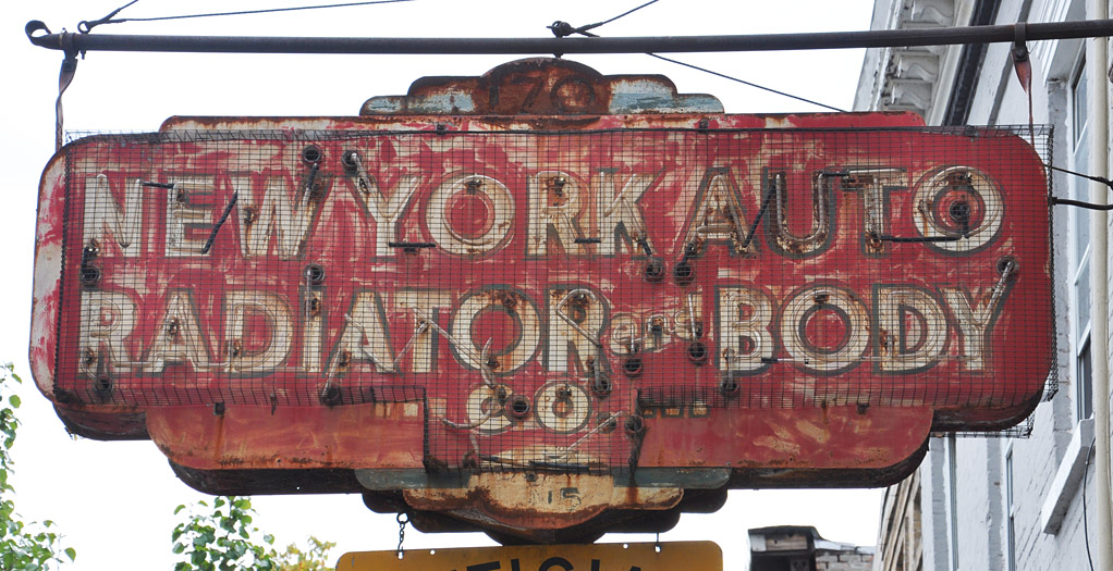 Central Ave. in Albany used to have tons of neon signs. I’ve seen quite a lot of them replaced with plastic box versions — and I’ve only been coming up here for about ten years or so. Here’s one hanging on — but maybe not for long. It looked like construction workers were “doing stuff” to the property: