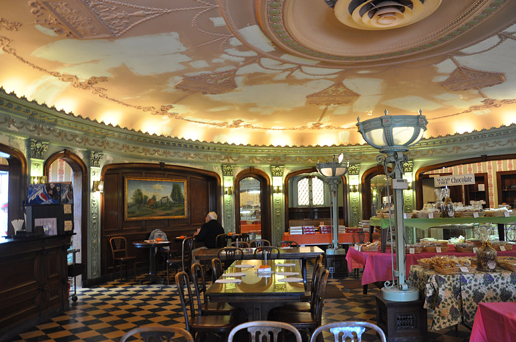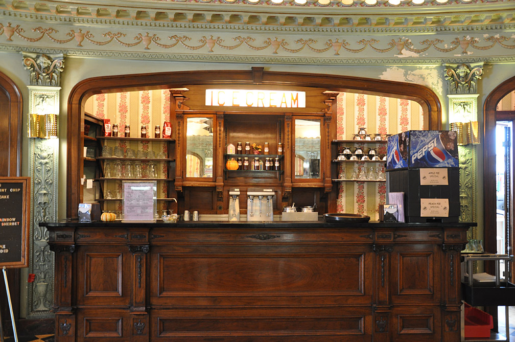 Here’s the building — and some interior shots. For a close-up of the exterior sign, you’ll have to go over to my Flickr photos from tonight.