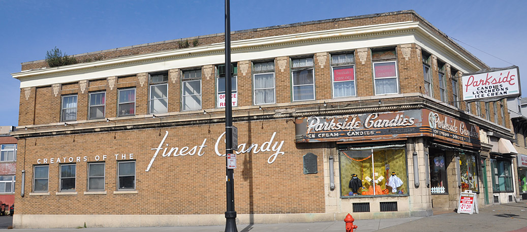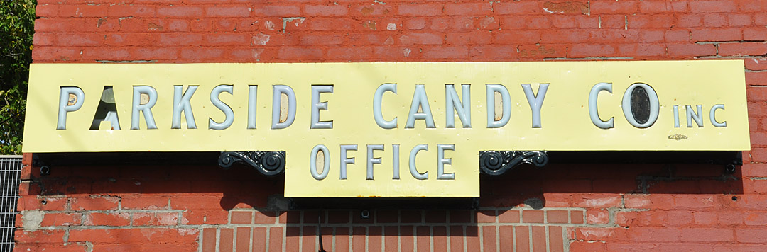 OK – let’s go off on a tangent, shall we? Parkside Candies. If you haven’t been. Go. I’ve been before, many times. But somehow, I missed this great sign back in the parking lot. If you don’t already recognize it, that’s opal glass. Translucent letters lit with bulbs from inside the sign. Most of these signs, and they are really rare, have some breakage — which I find charming really since it draws attention to its construction and fragility. I’m always on the prowl for these so if you discover any more of these, email me. Immediately.