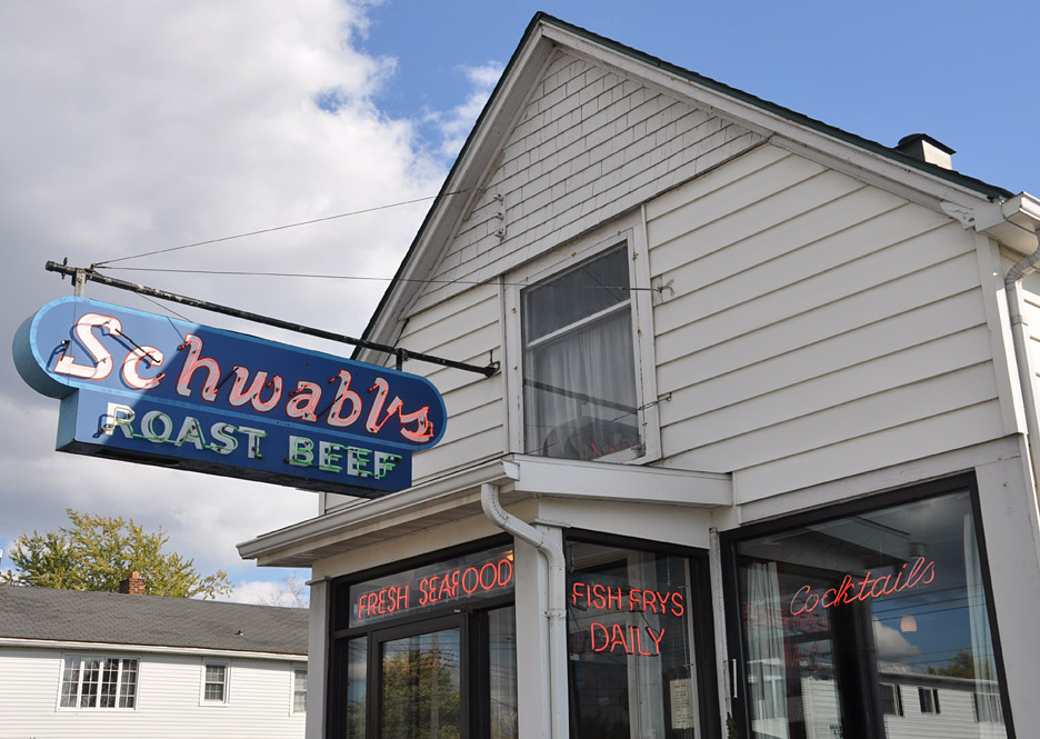 Moving on… to West Seneca. Now, I can’t attest to the goodness of this place since I’m a vegetarian and all. But if I were the meat-eating type, I’d probably give Schwabl’s a shot. Since 1837 — and they’re obviously taking good care of that sign and keeping it on day and night. Some nice gory meat photos at Flickr — but no good nighttime shots of the sign. Come on folks!