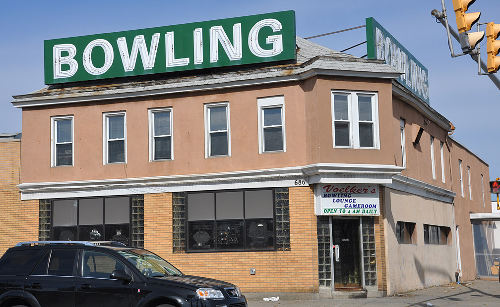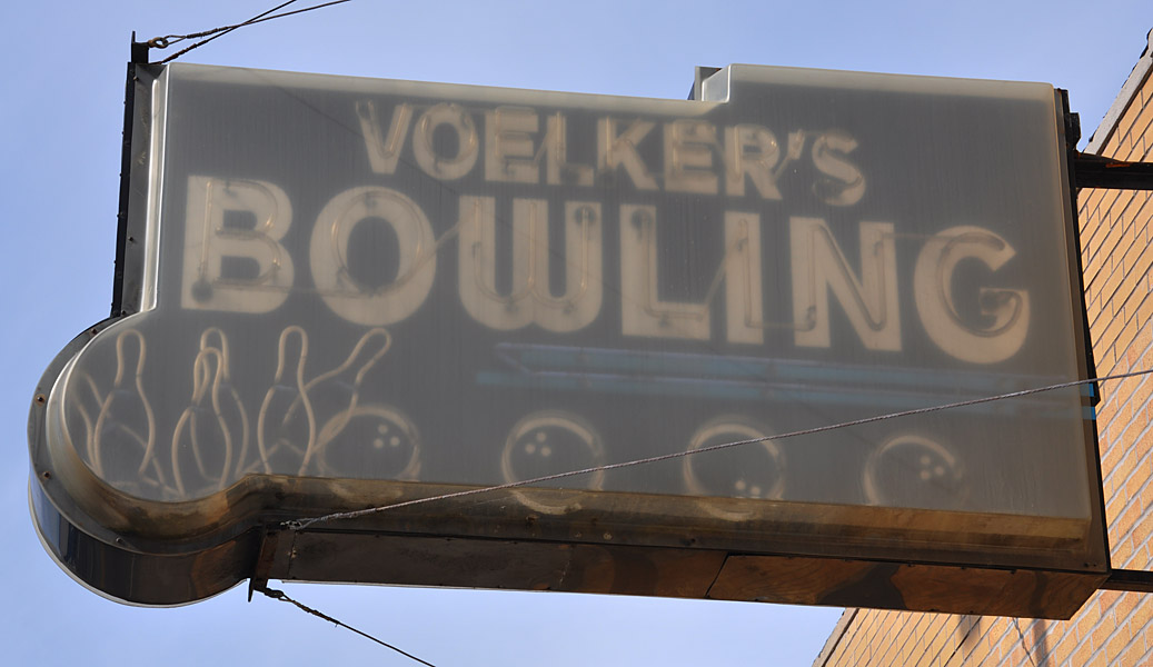 Voelker’s Bowling Center features these two “can’t-miss-it” rooftop signs —