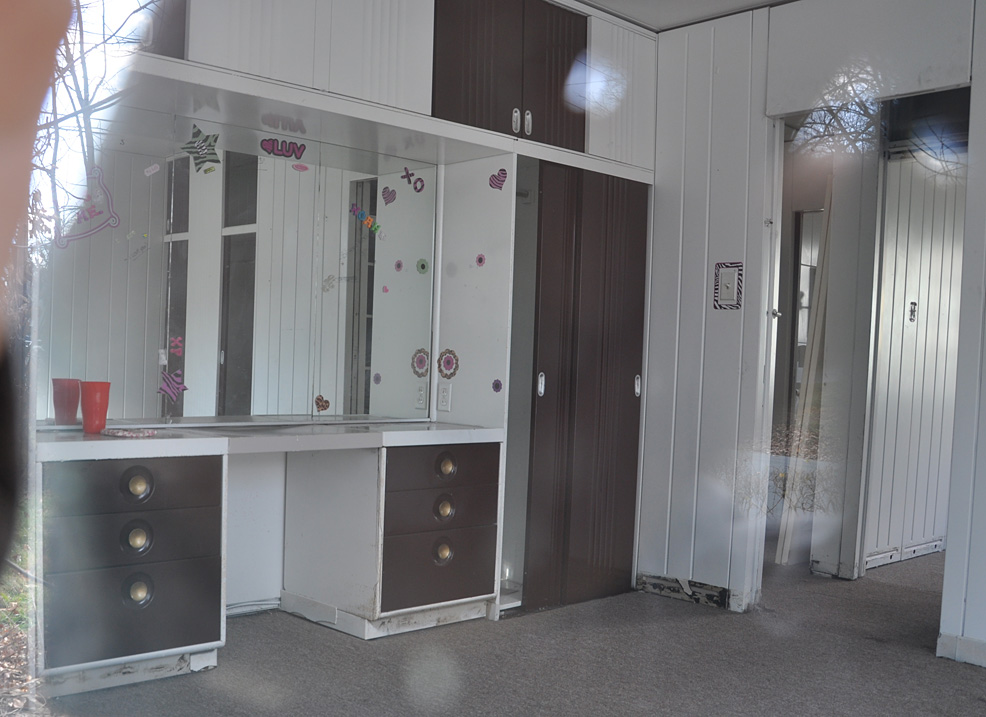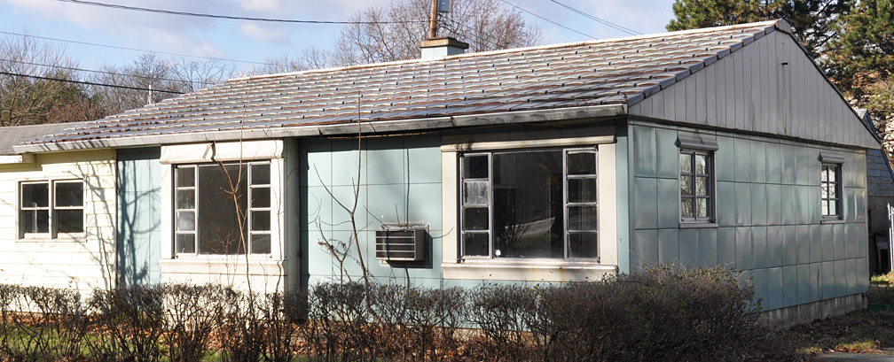 It was vacant with a big for sale sign on the front lawn. So I got to check out the interior sans people’s furniture, etc. For those of you not familiar with these guys, they’re porcelain enamel steel inside and out, including the roof tiles, interior walls and built-in cabinetry…