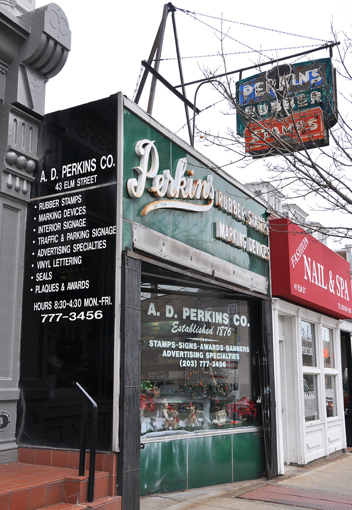 Also in New Haven. This one came as a complete surprise — which in itself is surprising since I’ve been all over New Haven and have been there thousands of times for various things. Since it’s winter, I didn’t have leafy branches to block the sign too much (close-up over at flickr tonight). Since 1876 and still going strong!