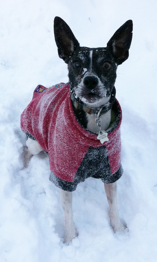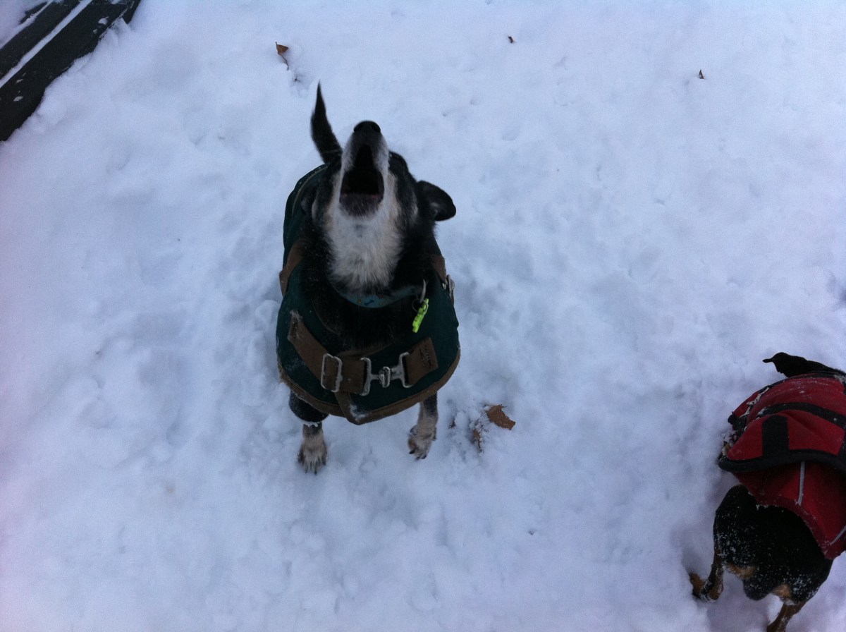 My kids in their serious winter attire. Sweaters under fleece-lined mini horse blankies. Except for Nik who’s active enough and hates coats enough that he just does double sweaters. Nik digs out a ball while Grem seeks possible crumbs. Fix expresses pure disgust & misery by standing on three legs with her ears pinned.