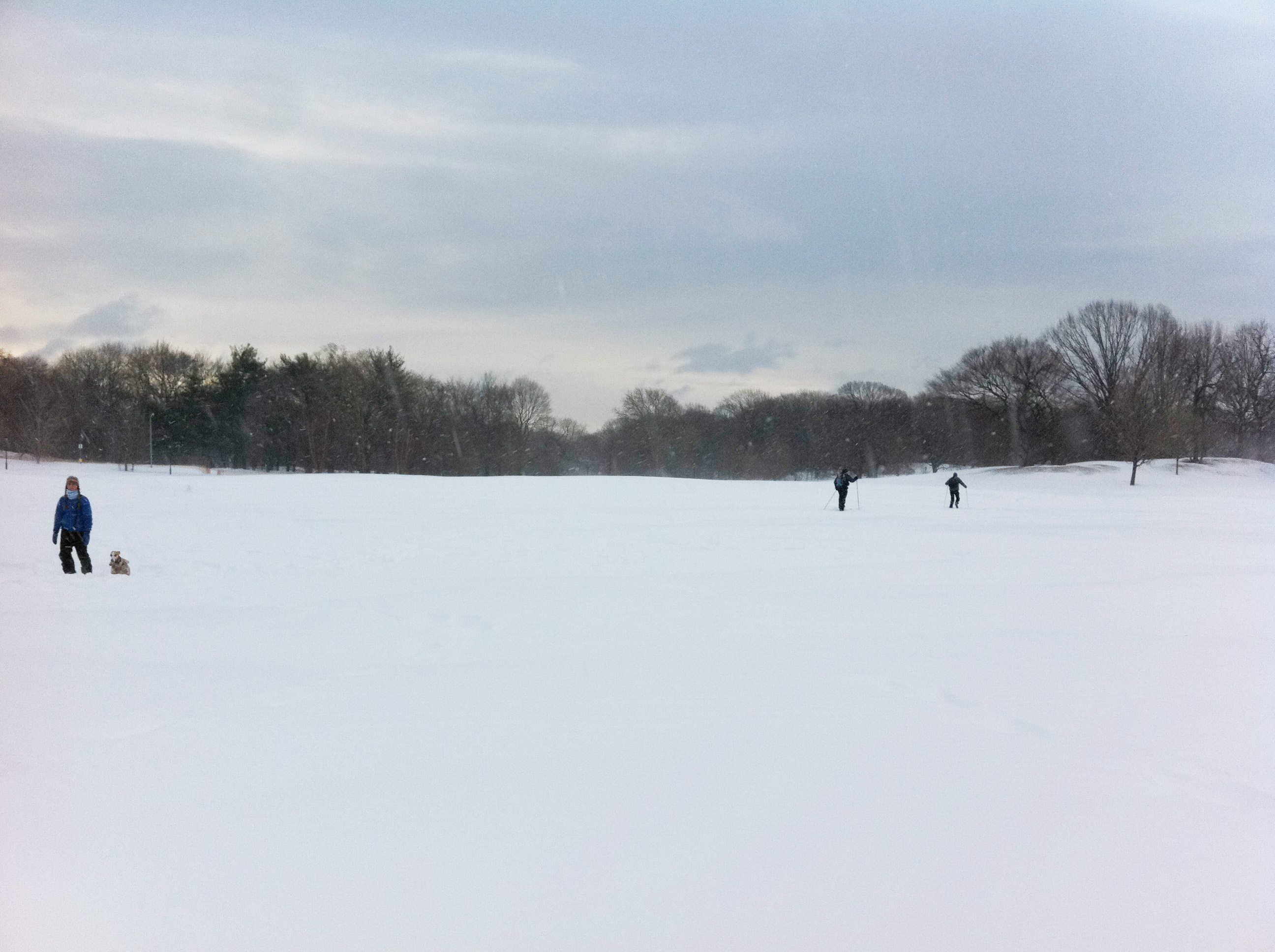 A few brave souls in the big meadow. Cross country skiers and a few dogs hardier than mine.