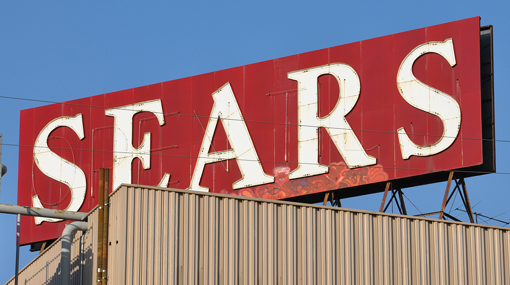 Still an operating Sears — different location from the bus shelter than I posted over at Flickr tonight: