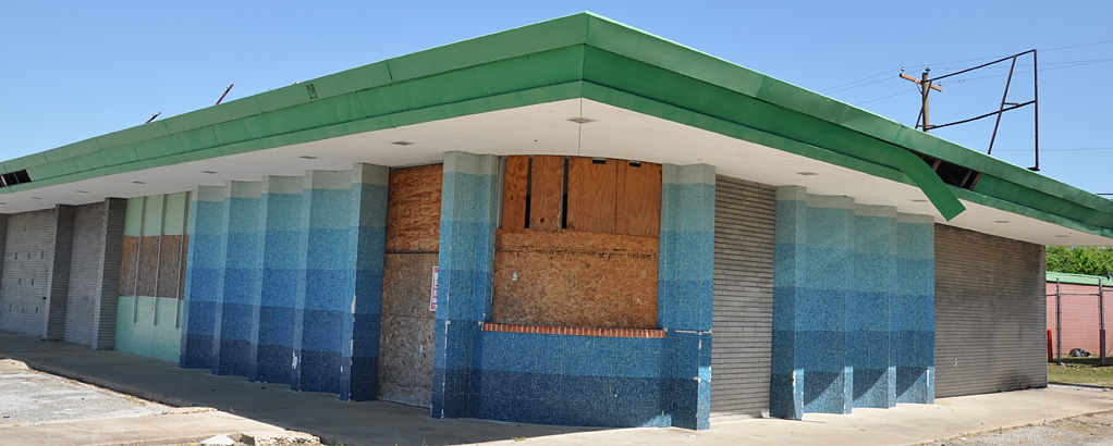 The owner came out & shared some of his vintage photos of the place. Sadly the pylon part of the building to the right has been remodeled (no more pylon):