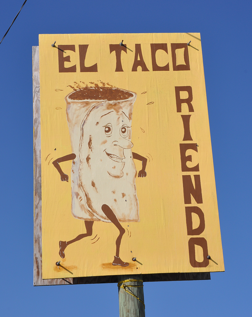 My pre-trip fantasy was to eat burritos every day I was in Texas. So far I haven’t had one. And I think I’d better wait awhile yet considering my tender tummy. I love humanized food signs! And note the entirely perfect blue skies that I missed today. I really felt like crying. This guy is in Refugio: