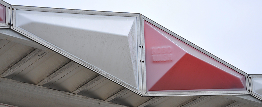 OK, are you still with me about Robo-Washes? I found another today in Rosenberg at a used car lot. Note the track & plastic paneling around the roof. No sign here though: