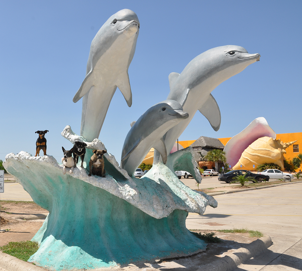 And finally, a couple shots of my companions at Seven Seas in Los Fresnos. I used the same photo-op a few years ago — but it was freezing cold and grey skies: