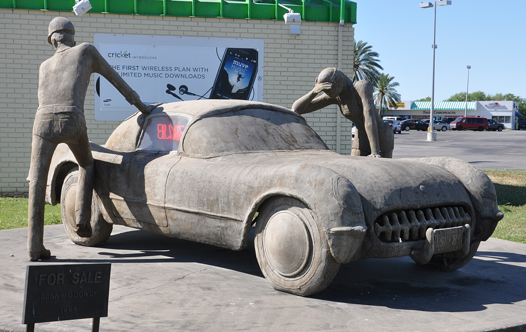 A local icon (or eyesore depending on your point of view). This “For Sale” statue done by a local artist has been at this intersection since 1984: