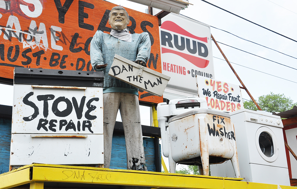 Alrighty then — on to more serious matters. Here’s one of my photos of the Santikos Mission 4 Drive-in Theatre from 2006. The drive-in closed a year later and it was announced that a library and park would be built on the site. At least they are preserving the screen tower in some way (the second photo from today):
