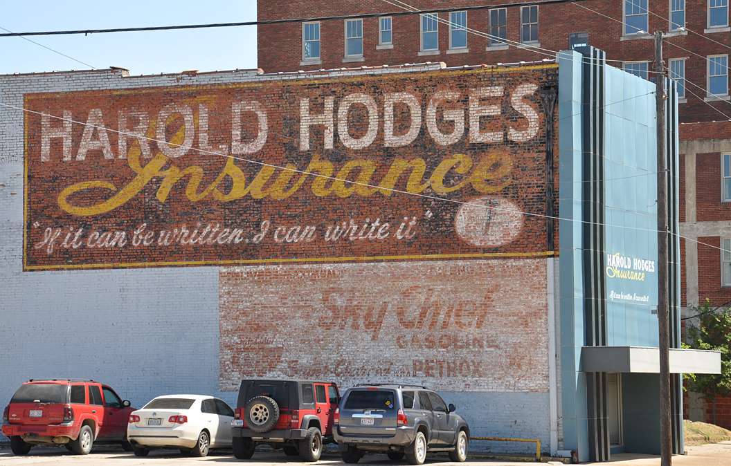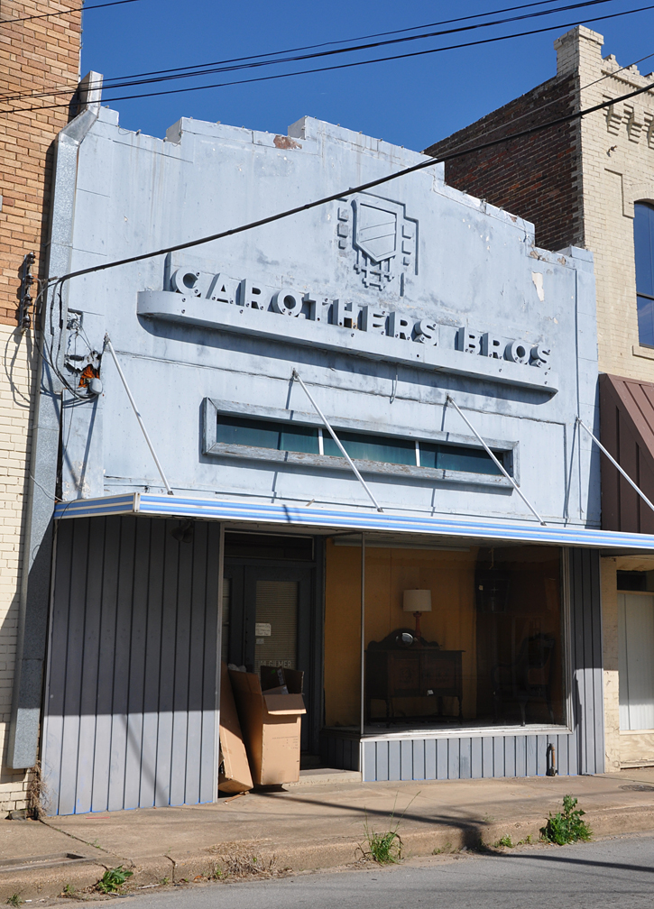 Miller’s Drugs in Cooper. Weird marbled patina. I have no idea what the original paint job was like on this Art Deco gem. Sometimes specks or marbling was used on painted signs – so it’s possible this might not be as bizarre as it seems: