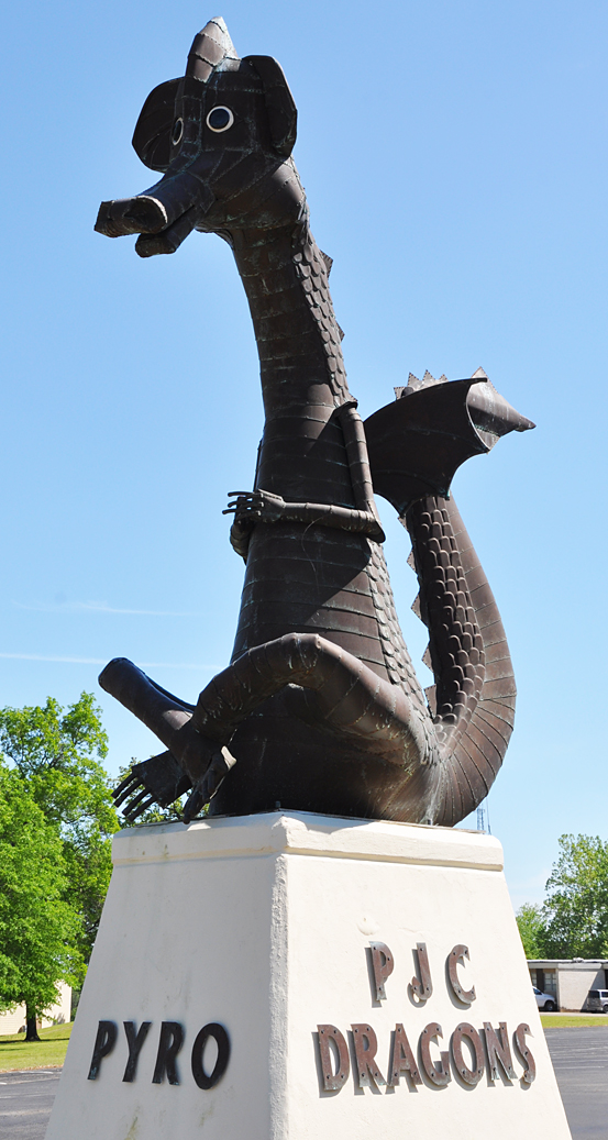 Paris Junior College has a dragon mascot. This guy sure seemed goofy looking. Don’t sports teams usually aim for threatening looking mascots?