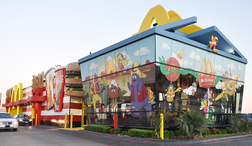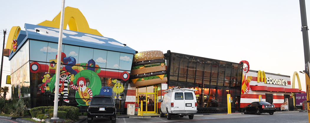 Posted an extra big batch over at Flickr just now & have another big blog batch. So since it’s after midnight, let’s get to it. The day started ever so briefly in Dallas where I encountered this mega McDonald’s. I guess that’s a giant Happy Meal Box? And the giant Ronald was kinda creepy: