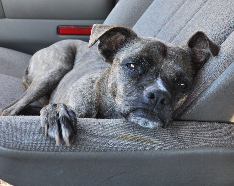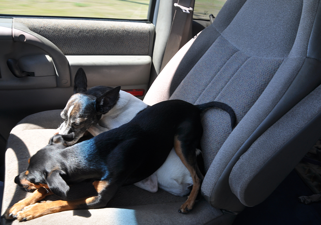 Finally, a few doggie pix. I know, I need to get some actions shots but this will have to do for now. Fixie’s “Are we there yet?” look. I usually put the arm rest down for her since I know she likes to rest her head on it between napping and staring at me.