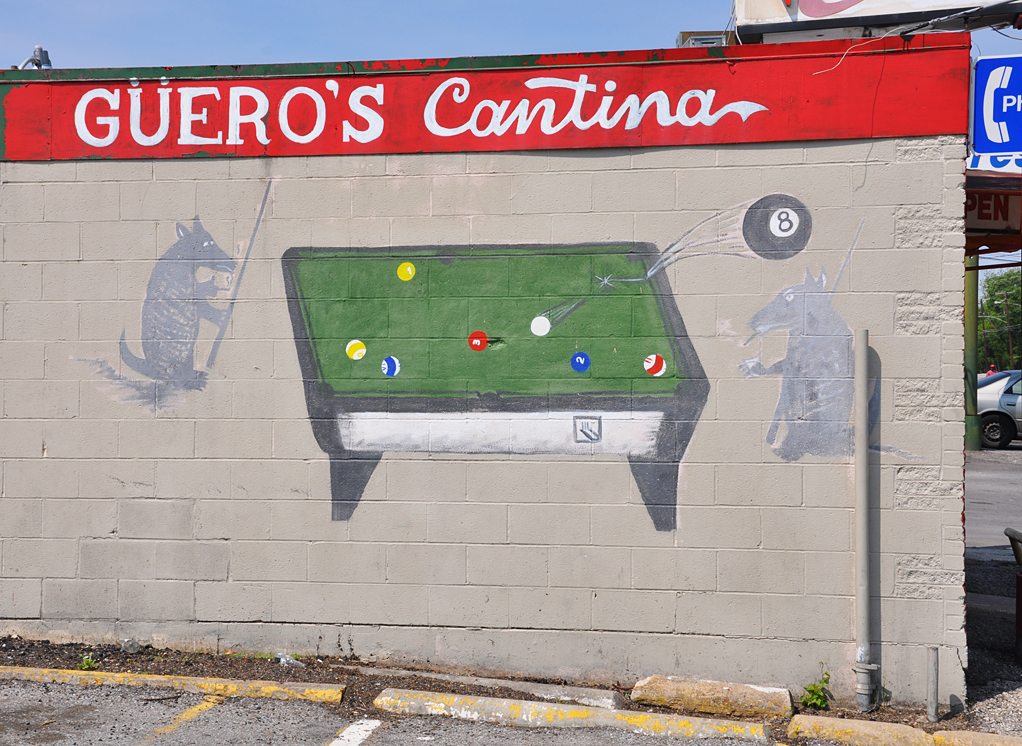 Had to shoot this one. At first, I thought it was a reference to those illustrations of dogs playing pool & poker. But the figure on the left might be an armadillo. So maybe it’s two armadillos after all? Whatever — I just love the perspective and everything about this: