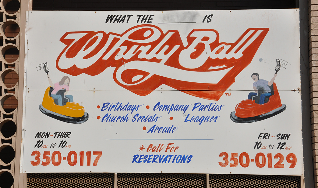 The same place had this fun advertisement. I don’t know if Whirly Ball ever caught on but it sure looks like fun. And what’s with the text on top that just begs for graffiti?