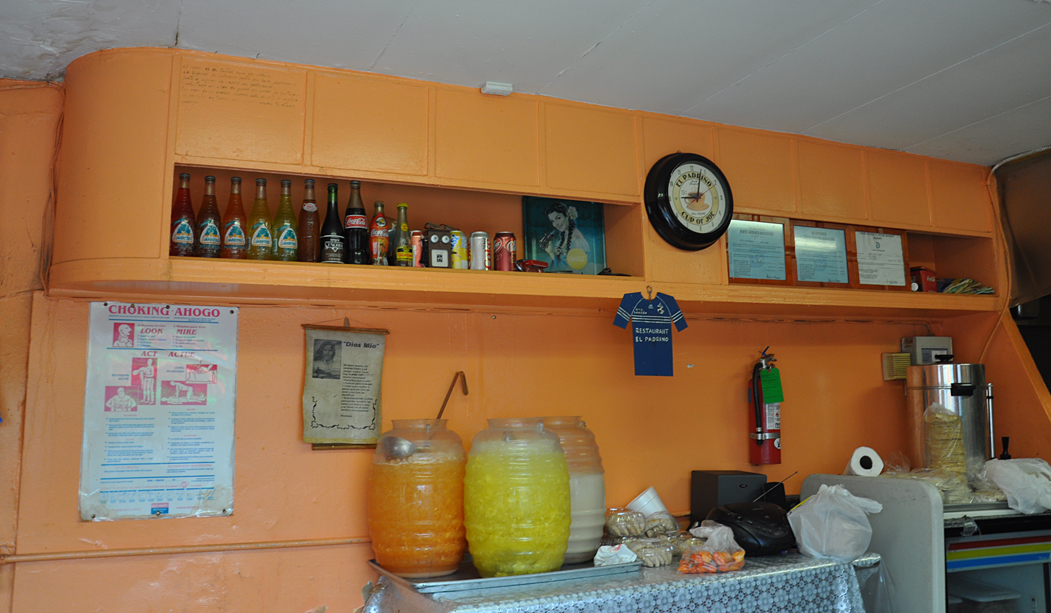 and the give-away — the money box by the door (painted over a number of times here). The KSHS website describes it better than I can: “a small wall safe located just inside the door…. Operators would put a percentage of each day’s profits in the wall safe, and a Valentine representative would make regular rounds, removing the payment from each diner on the route. Wall safes were phased out on new models by around 1960. ”